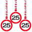 Drie hangdecoraties met onderaan de verkeersbord 21. Afmeting: 18 cm x 75 cm
