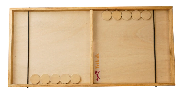 Het is heel eenvoudig. Elke speler heeft 5 houten schijven aan zijn kant van het bord. Het doel van het spel is om je schijven met behulp van de elastiekjes naar het veld van de tegenstander te gooien. De eerste speler die geen schijven meer heeft, wint!